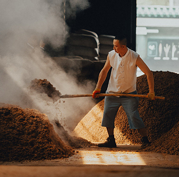 這種香型的白酒,以高梁為原料。以小麥高溫制成的高溫大曲或縱曲和產酯酵母為糖化發酵制,采剛高溫堆積,一年一周期,二次投料,八次發酵,以酒養糟